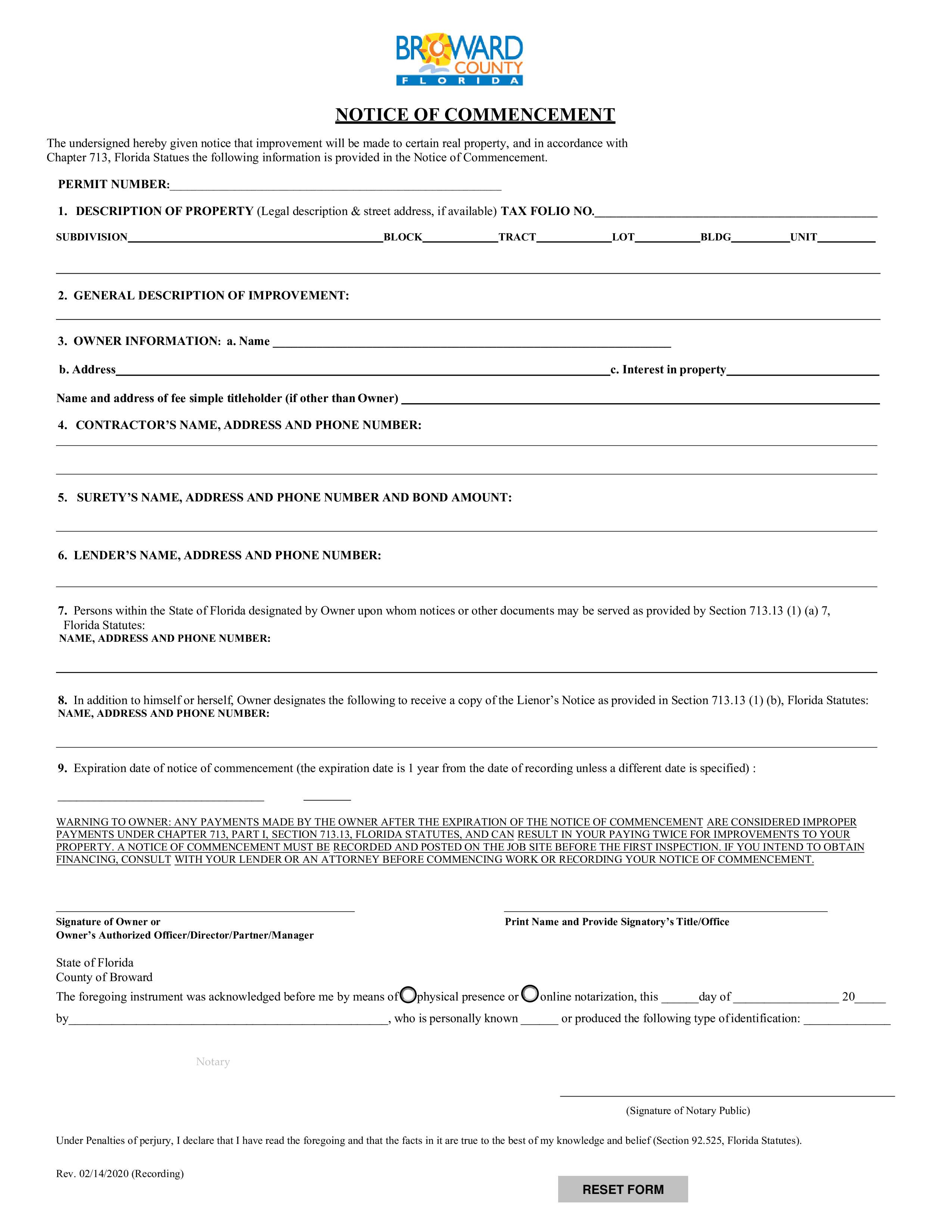 Broward County, Florida Notice of Commencement
