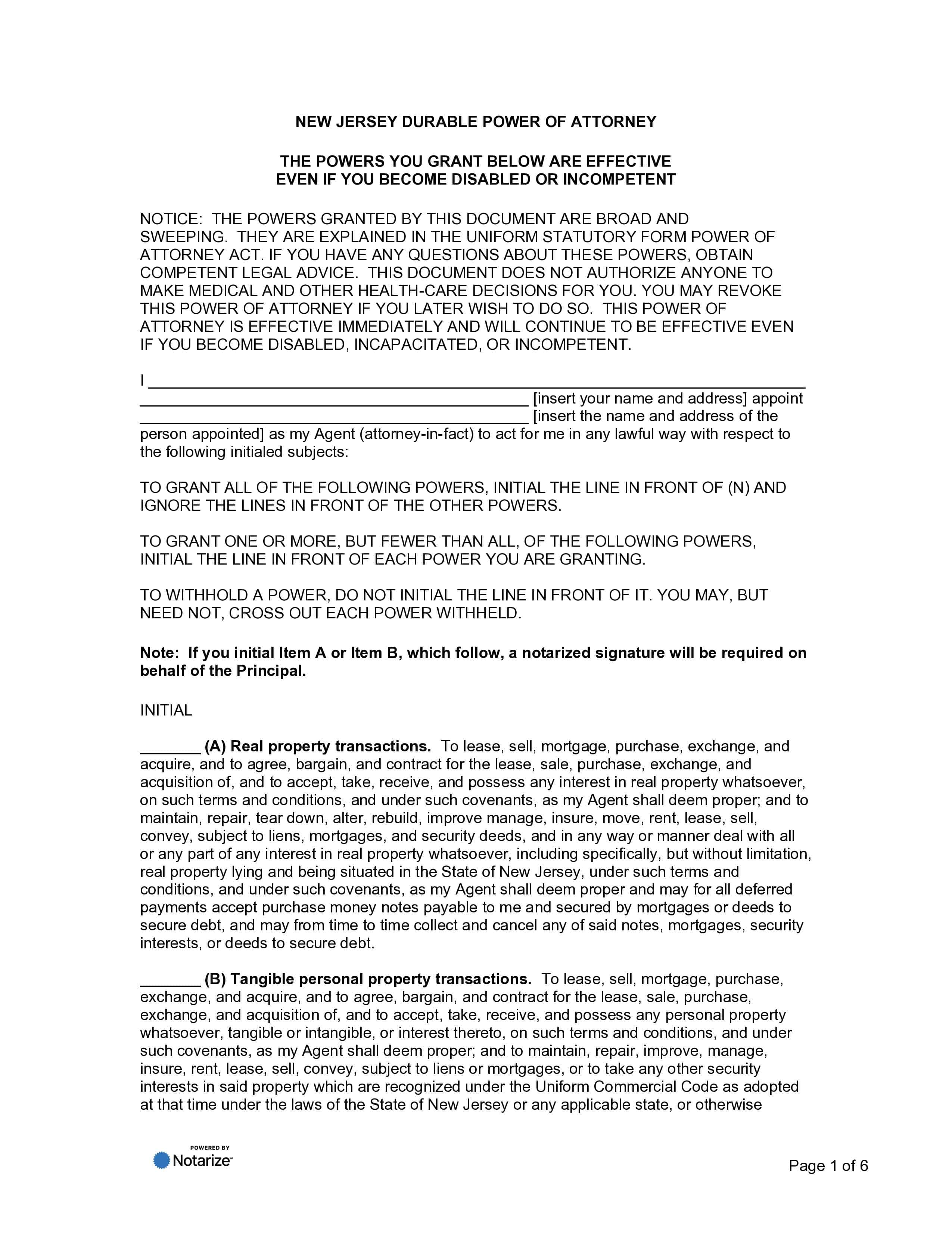 Effortlessly complete your New Jersey Durable Power of Attorney with our trusted online notarization service. Our platform ensures a secure, convenient, and efficient notarization process.