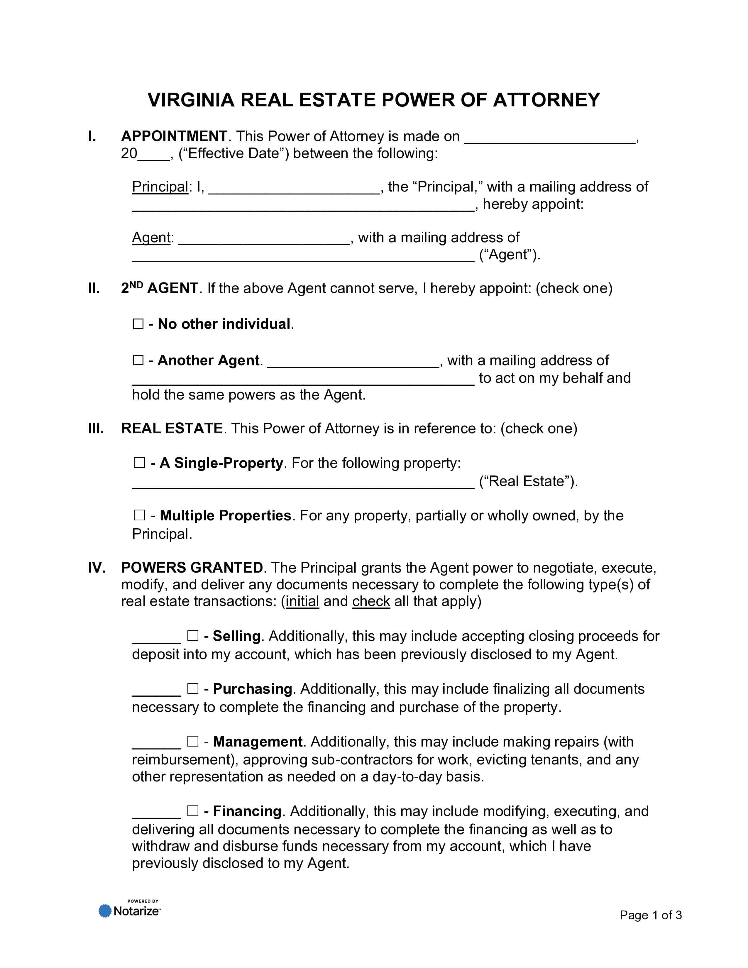 Virginia Real Estate Power of Attorney